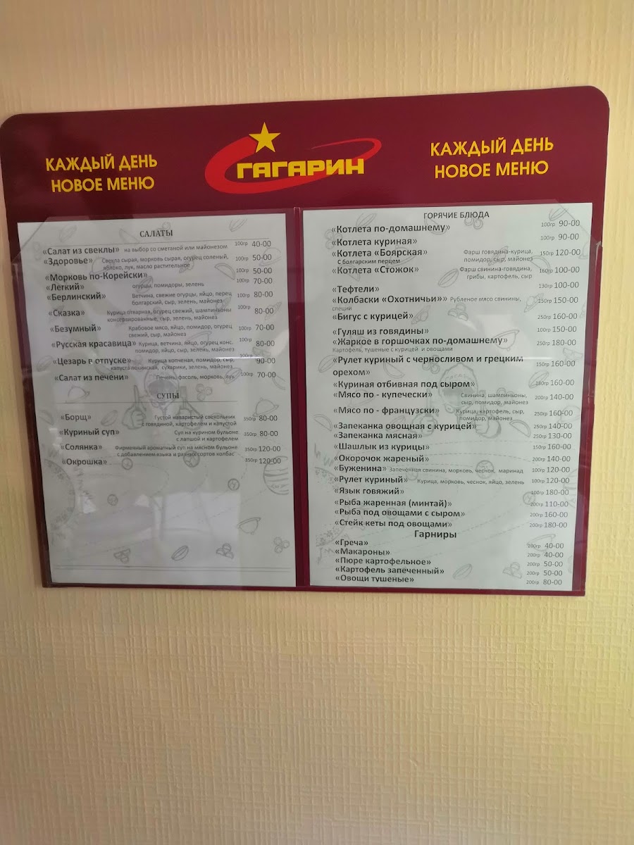 But it’s not just the food that captivates guests; Gagarin also prides itself on a **friendly and efficient staff** that enhances the overall dining experience. As noted by numerous patrons, the café boasts a clean and inviting space with half of the tables adorned with soft couches—perfect for settling in for a long meal or a quick lunch break. Customers frequently rave about the **generous portion sizes** and the café's commitment to providing fresh, flavorful dishes at affordable prices. Indeed, one customer, Виталий Подловилин, praised it as a place to “quickly and deliciously eat” and emphasized the affordable yet high-quality offerings, while others like Андрей Зотов have hailed it as “the best café in Surgut.”